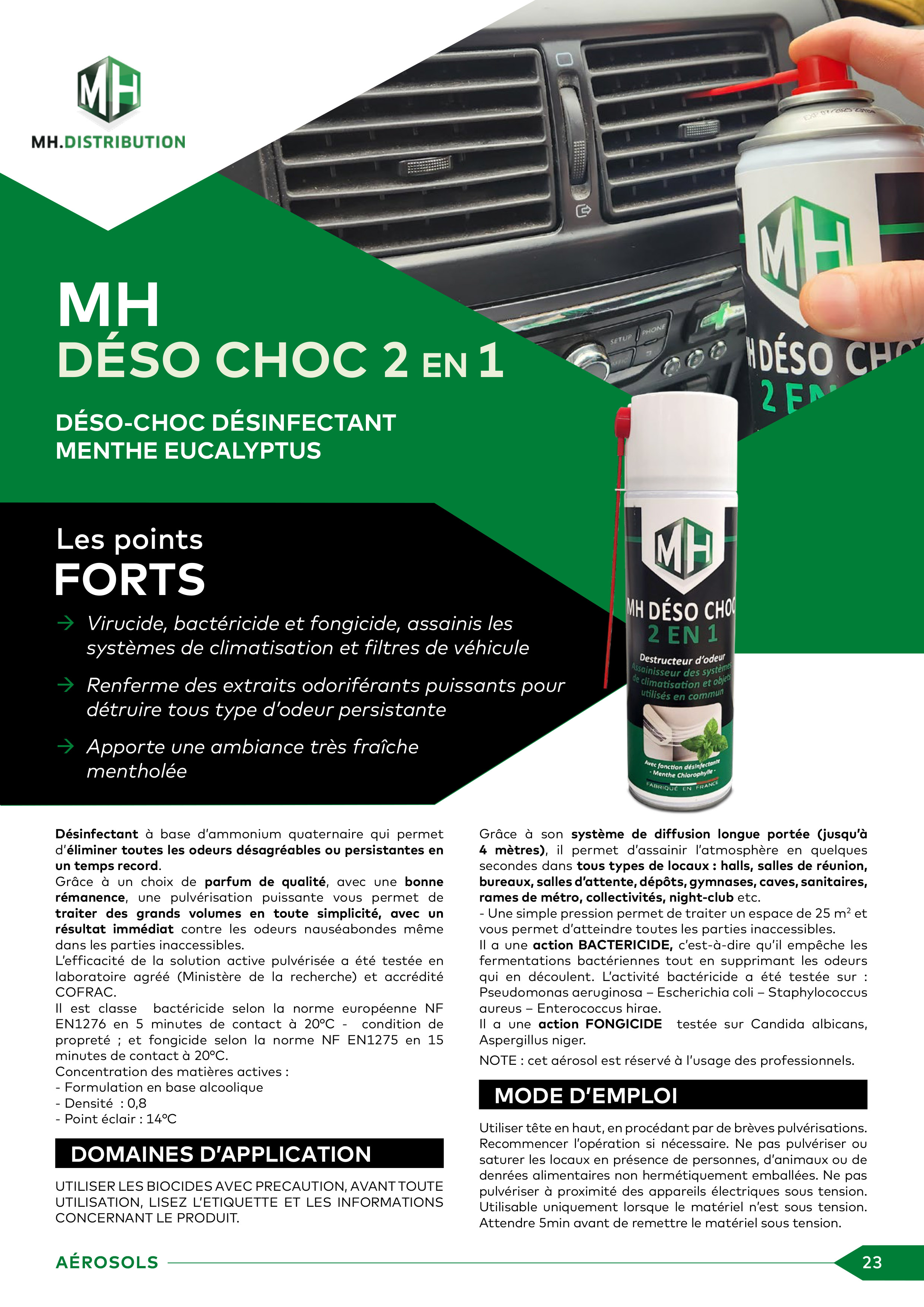 MH DESO CHOC /// Déstructeurs d’odeur et désinfectant menthe eucalyptus 500ml