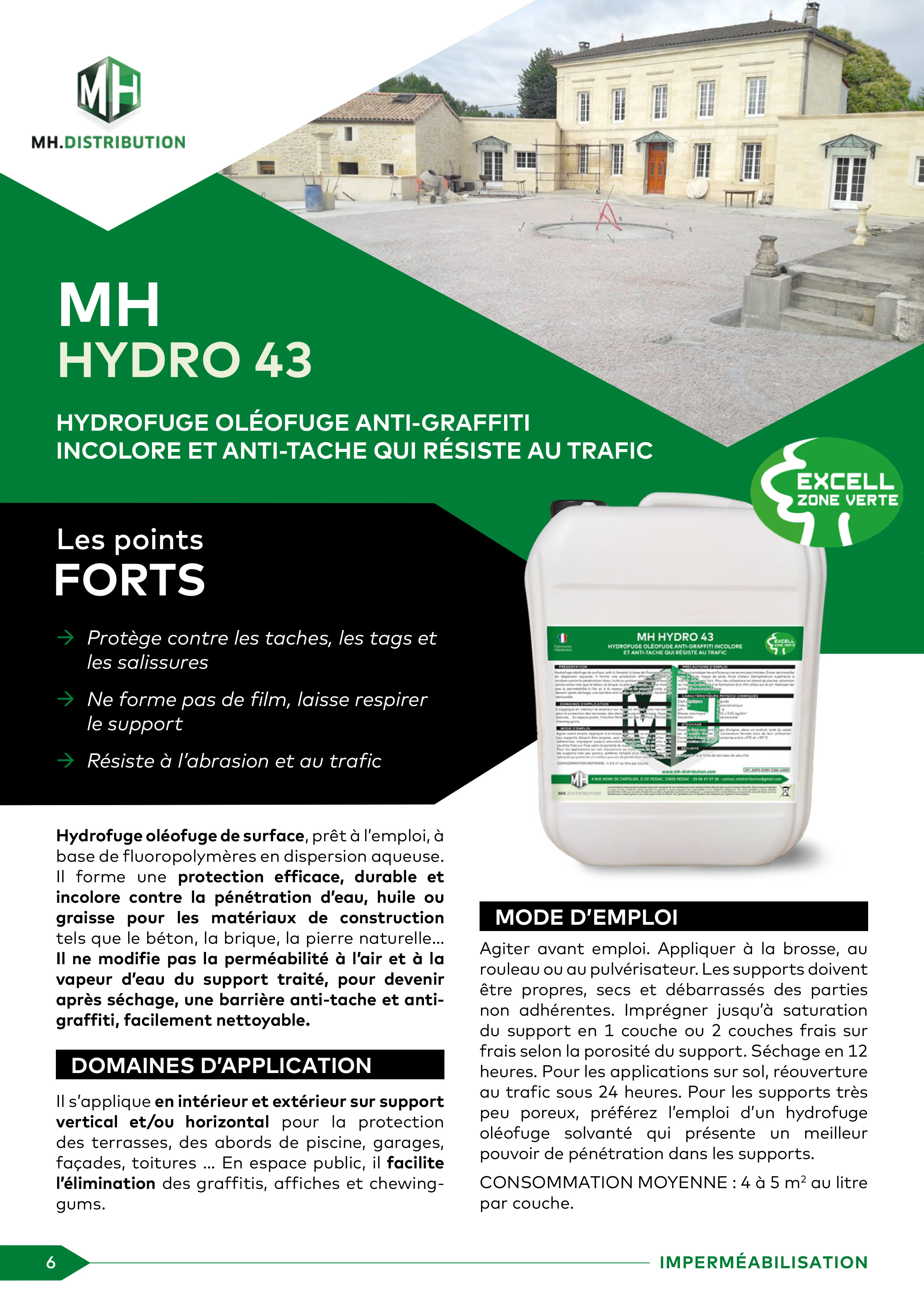 MH HYDRO 43 /// Hydrofuge Oléofuge incolore et anti-graffiti en phase aqueuse